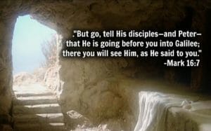 Finally, it is dawn on Resurrection Sunday. An angel is talking about Peter! Mark 16:7 says, “But go, tell His disciples—and Peter—that Jesus is going before you into Galilee; there you will see Him, as He told to you.”